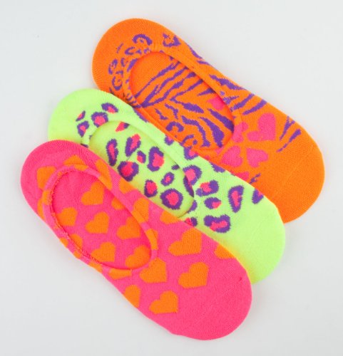 Full Tilt no show socks. 3 pack. Animal and heart prints. Fits shoe sizes 4-10.5. 73% acrylic/24% polyester/2% spandex/1% rubber. Machine wash. Imported.